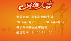 歲月如梭,一年一度的春節長假又將來臨,值此新春佳節之際,訊網網絡全體員工衷心感謝您在過去一年里對訊網網絡的支持和信任,提前給各位新老朋友拜年,恭祝大家生意興隆、事業大吉、闔家歡樂,馬年吉祥!